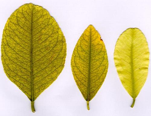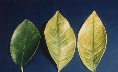 Si la deficiencia continua, las nervaduras se vuelven también cloróticas y los síntomas se extienden a las hojas más viejas.