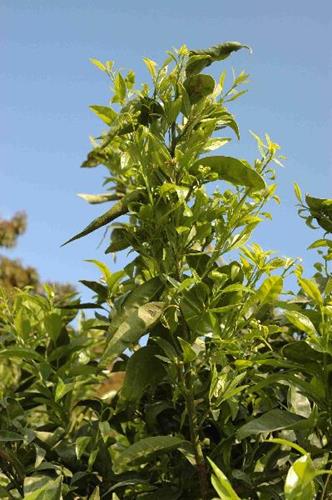 Deficiencia de zinc en las ramas de naranjo.