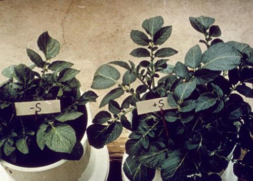 La deficiencia de nitrógeno produce síntomas parecidos, aunque comienza en las hojas más viejas.