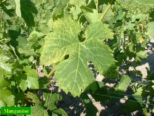La deficiencia de magnesio produce síntomas similares, pero empiezan en los bordes de las hojas más viejas. Incluso en las fases tempranas de la deficiencia de manganeso los síntomas aparecen en todo el limbo foliar.